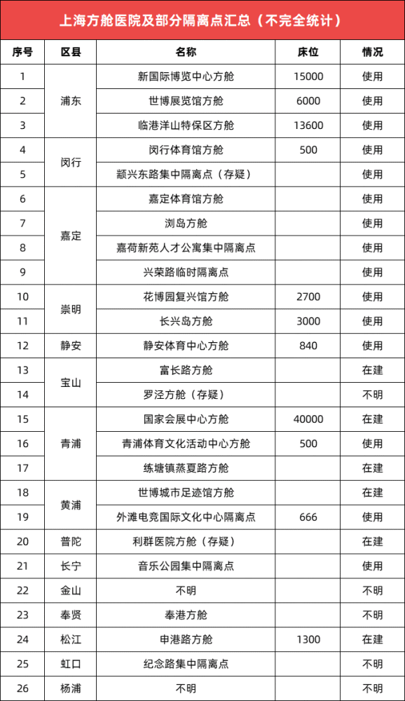 8日,上海日增本土病例(確診+無癥狀)已破兩萬。在抗疫最緊要關(guān)頭,登上老百姓關(guān)注排行榜榜首的,非以下兩個(gè)問題莫屬。一個(gè)是確診和密接是否能及時(shí)轉(zhuǎn)運(yùn);一個(gè)則是居家隔離抗疫是否能有民生保障。毋庸置疑,在上海抗疫方針不斷調(diào)整變化的形式下,政府如何解決病床缺口讓普通老板姓也擔(dān)憂不已。社交平臺(tái)上我們經(jīng)常能看見的、曝光較為頻繁的以世博方艙、新博覽會(huì)展方艙為代表的浦東方艙陣營,因最早加入抗疫前線,公眾較為熟悉。那么放眼整個(gè)上海,還有哪些方艙隔離點(diǎn)呢?CEIDI西遞根據(jù)網(wǎng)絡(luò)上不完全統(tǒng)計(jì),將上海區(qū)域隔離點(diǎn)匯總?cè)缦拢?